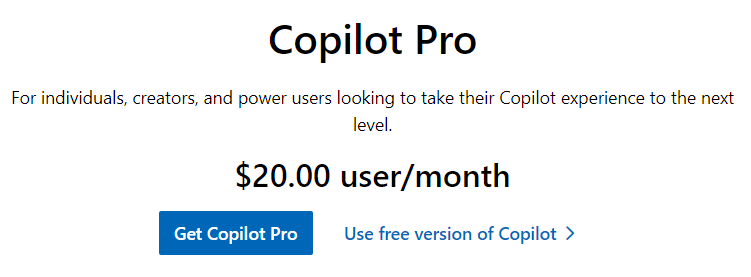 值得注意,“专业版”不会捆绑Microsoft 365订阅服务。就像企业级 Copilot 提供(适用于 Microsoft 365 的 Copilot)一样,“专业版” 是一个额外高级附加项,这使得最低档次 Microsoft 365 订阅总成本达到每月27美元(Microsoft 365个人订阅6.99美元/月 加上 “专业版”20美元/月)。