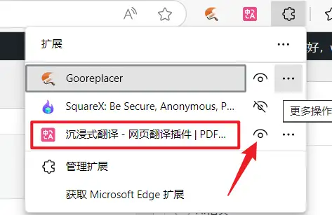 接下来,可以打开翻译插件在工具栏显示的选项,这样就不用每次都点击『管理扩展』再配置插件了。